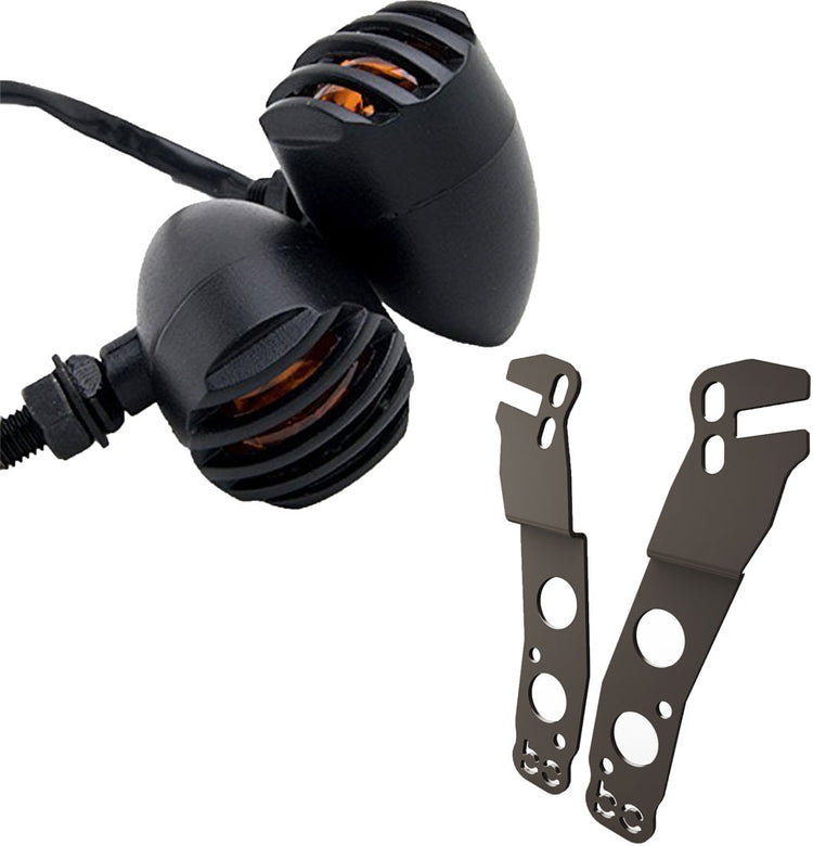 Kawasaki Vulcan vn900 Rear Turn Signal Brackets (Left & Right) + Finned Grill Turn Signals (2pc)