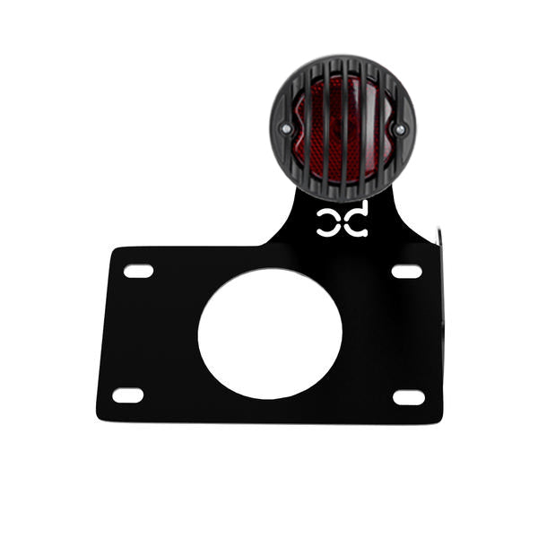 BobberCycle Multi-FIT Horizontal License plate bracket with Brake light is designed to worth with a multitude of BobberCycle bolt on add-ons. Few options include: Tool Bag, Saddle bag,  Rear Fender Struts, Rear fender, Rear fender bracket, Saddle Bags, License plate brackets, Brake Lights, and more. Made from ⅛” thick 11 gauge cold rolled USA made steel, our BobberCycle Multi-FIT Horizontal License plate bracket with Brake light is the highest grade available on the market.